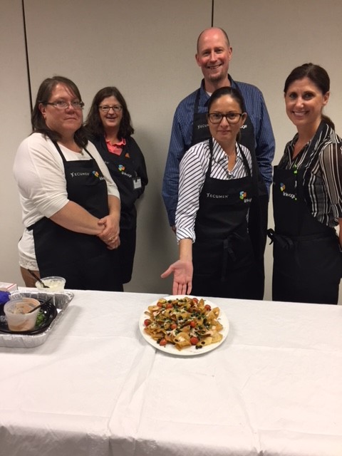 Winners of the Chop Challenge for the House Made Chips were: Jennifer Karjala and Nancy Sura of Grand Village, and Ned Rokke, Jazmin King, and Amy Olson of Ecumen Home Office.