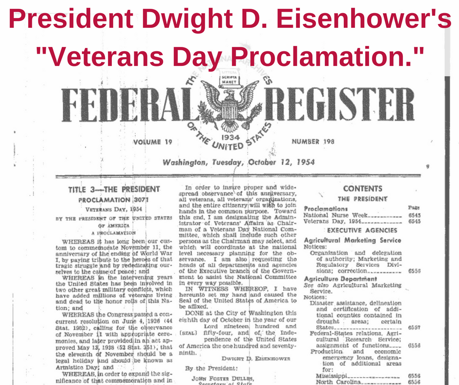 You can also view a copy of the original Veterans Day Proclamation signed by Dwight D. Eisenhower on October 12, 1954.